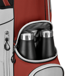 Perfect for winter rounds or travel, it features a 4-way top that comfortably fits a 2/3 set of clubs and offers impressive storage for its size, including a large cooler pocket, magnetic phone pocket, and weather-sealed soft touch pocket.